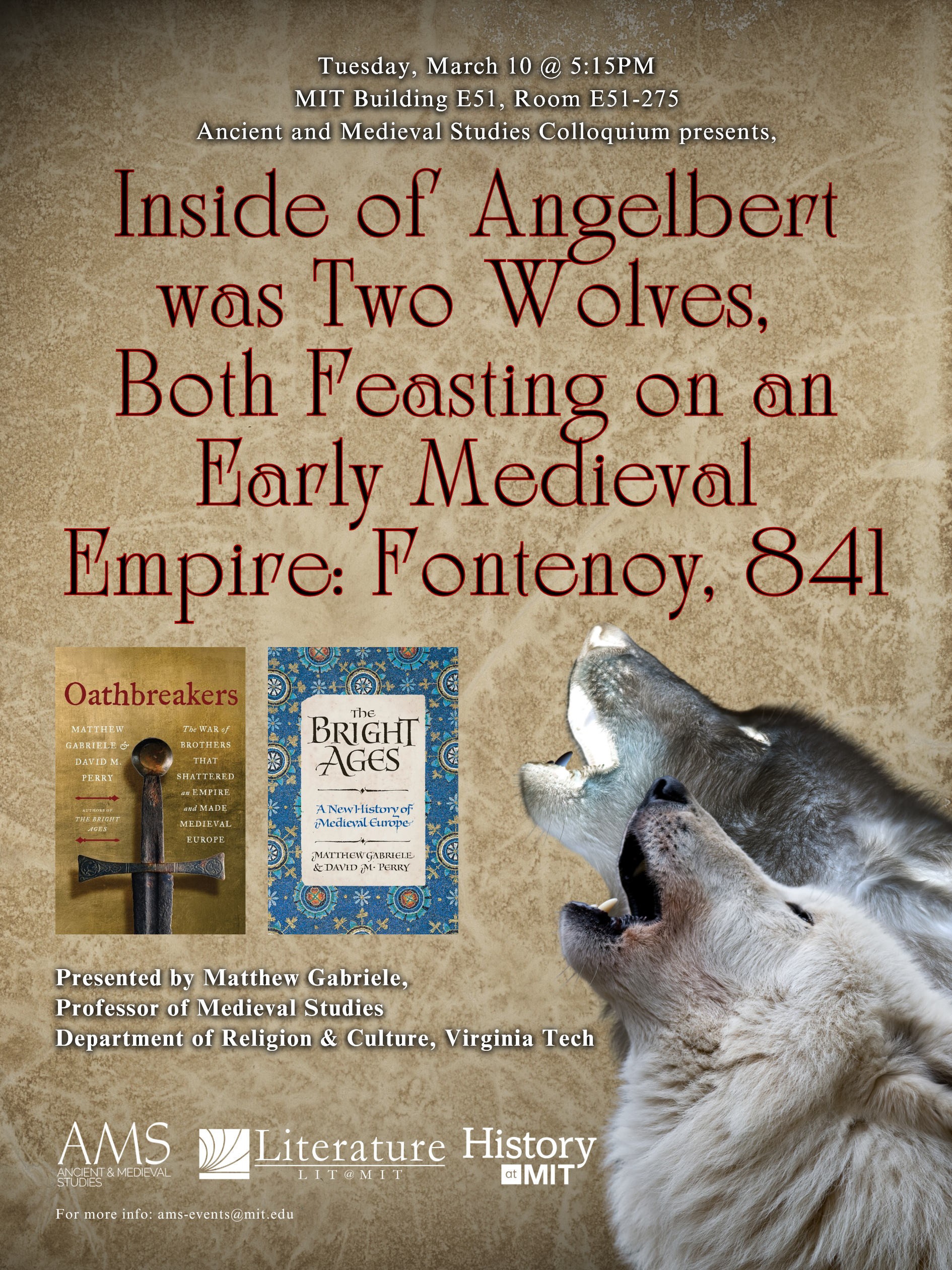 Ancient & Medieval Studies Colloquium presents, Matthew Gabriele “Inside Angelbert was Two Wolves, Both Feasting on an Early Medieval Empire: Fontenoy, 841”