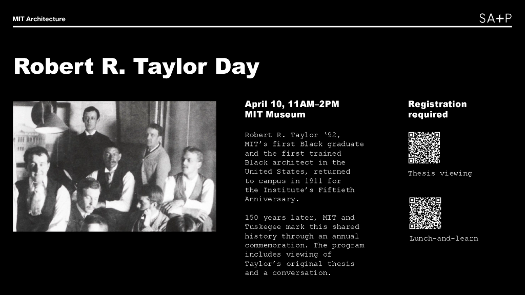 This program hosted at the MIT Museum is presented by MIT Architecture and the MIT School of Architecture and Planning. It includes viewing of Robert R. Taylor’s original thesis and a lunch-and-learn session. Registration required.