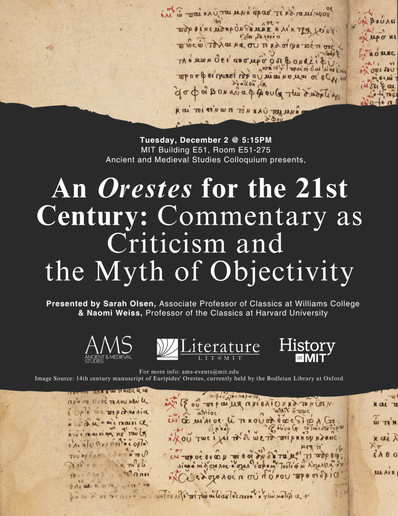 Euripides’ Orestes, first produced in 408 BCE, was one of the most popular tragedies in the ancient Greek and Byzantine worlds. It is also a play suited to a range of current scholarly and cultural interests, from ancient music to queer reimaginations of antiquity to the construction of race in ancient Greece, while the ways it pushes the boundaries of form and genre look increasingly at home among today’s postmodern and experimental theater. At present, however, work on Orestes is hampered by the absence of a modern English commentary. In this talk, we will discuss our approach to creating such a commentary, as well as broader questions about the purpose, audience, and unexamined assumptions of the commentary as a scholarly genre in the 21st century.