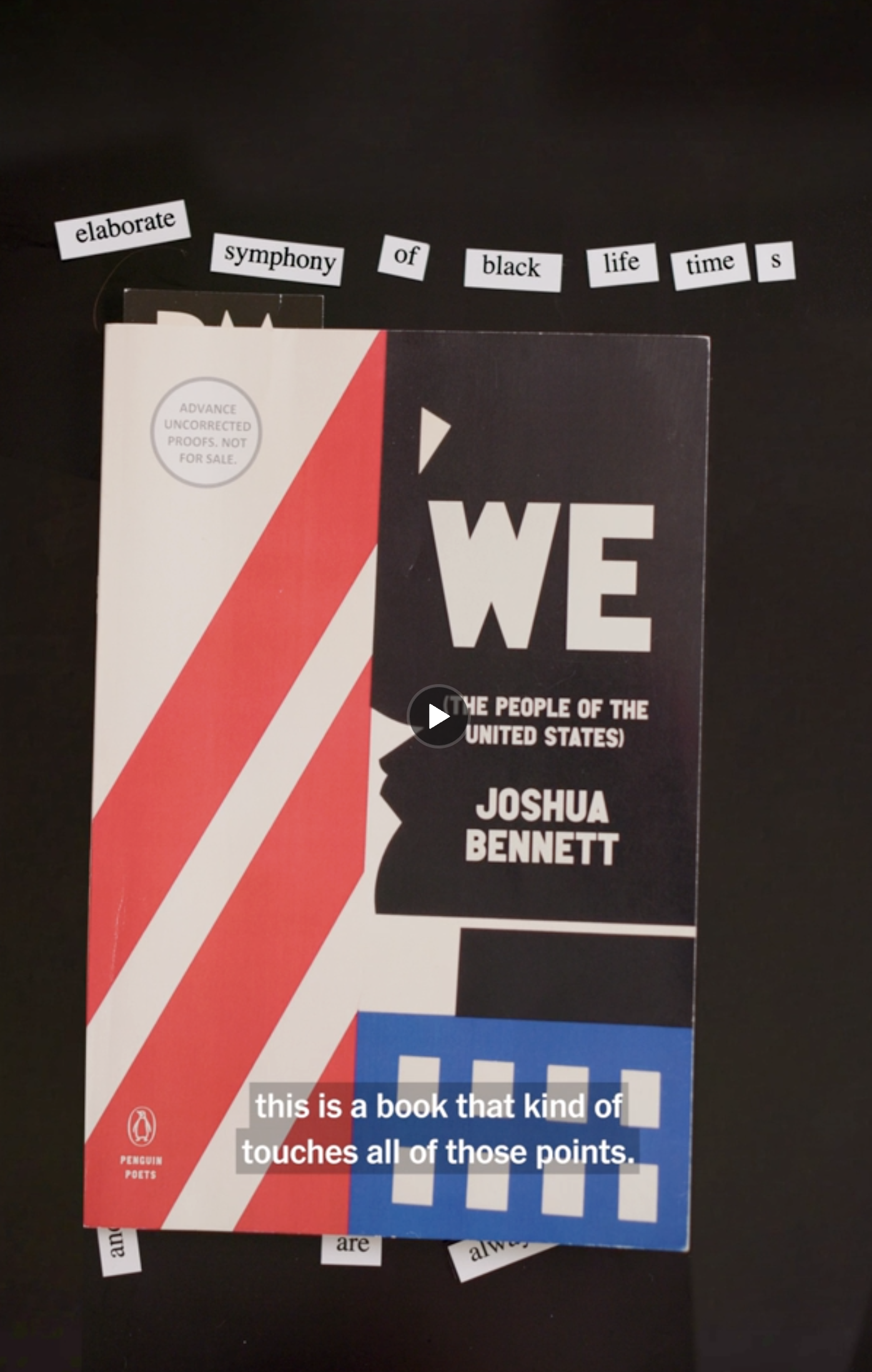 It’s National Poetry Month! Greg Cowles, an editor at The New York Times Book Review, recommends some poetry books while writing poems with fridge magnets. The first book of the fridge magnet poems is the newest release by Prof. Joshua Bennett, We (The People of the United States). See the video by Greg Cowles, Edward Vega and Laura Salaberry, released on April 25, 2026 on the NYT Book Review website!